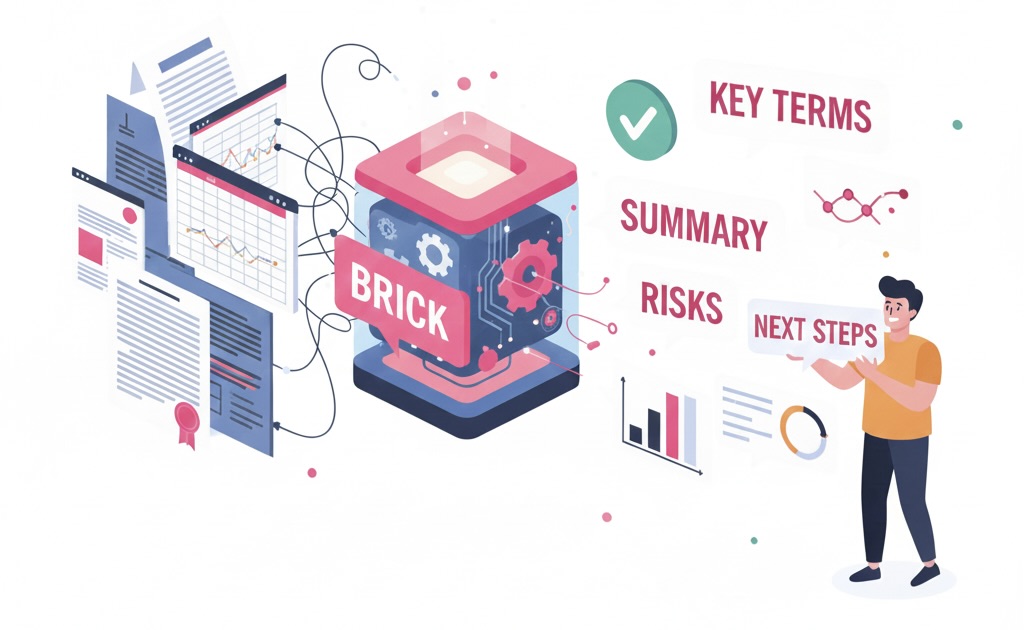 Upload contracts, surveys, floor plans, or any property documents. Brick will help you understand them and provide better, more contextualized answers to your questions.